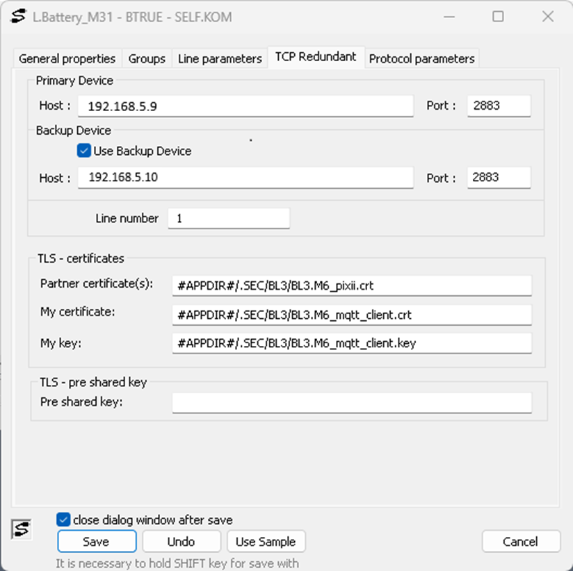 So today I want to show you a screenshot from a colleague who configured a TCP/IP-TCP Redundant line in a new production application so that the communication is encrypted. The line contains stations with the MQTT protocol, which is used to control the PIXII battery storage.