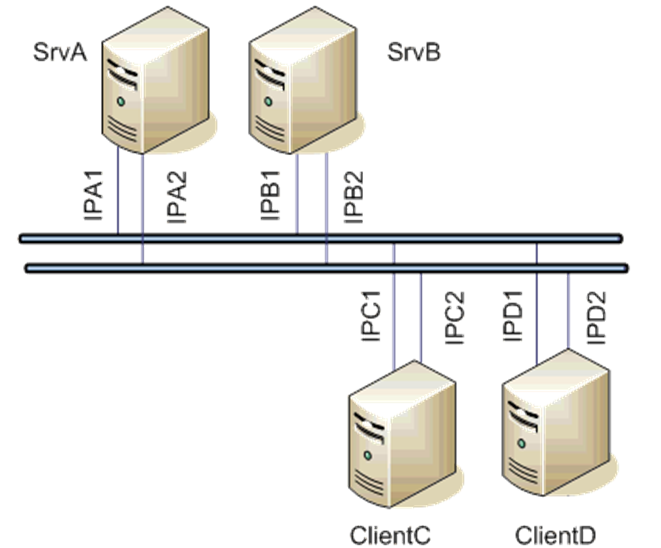 The situation will be similar to the following figure, borrowed from our IEC 870-5-104 protocol documentation. SrvA and SrvB can represent MQTT servers, ClientC and ClientD can represent D2000 Servers.